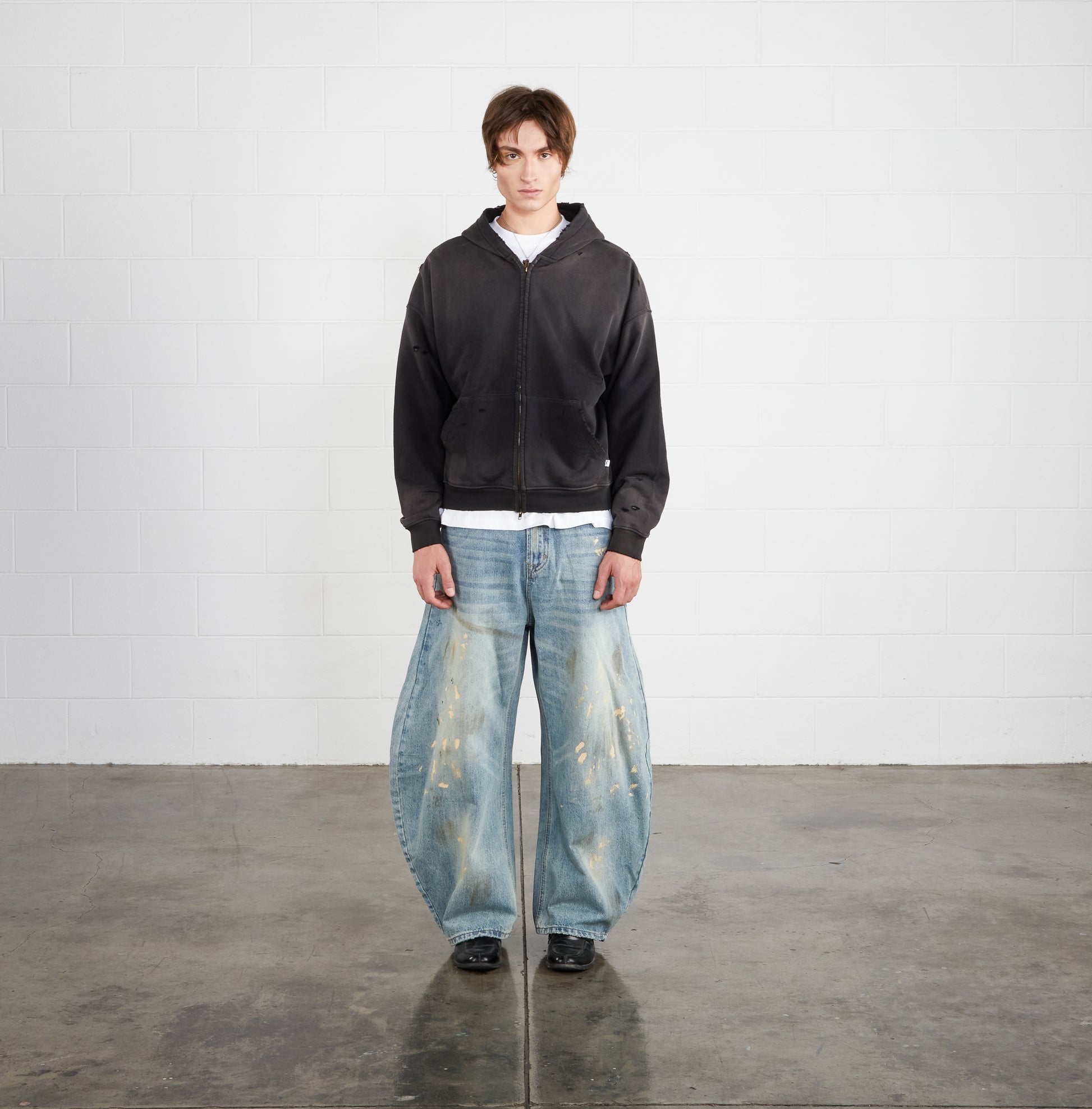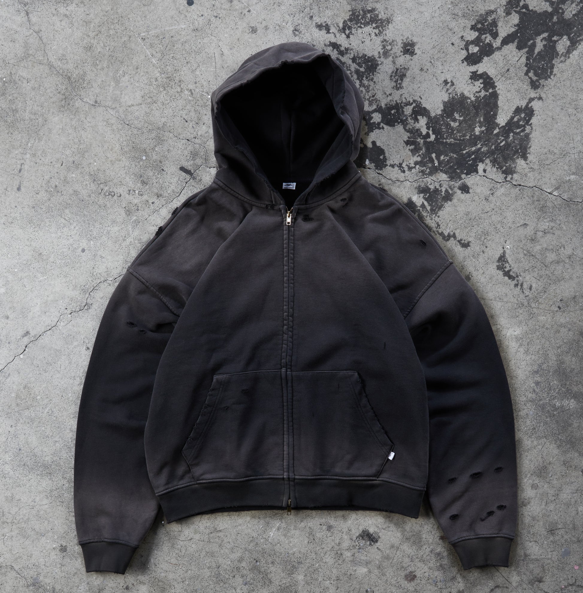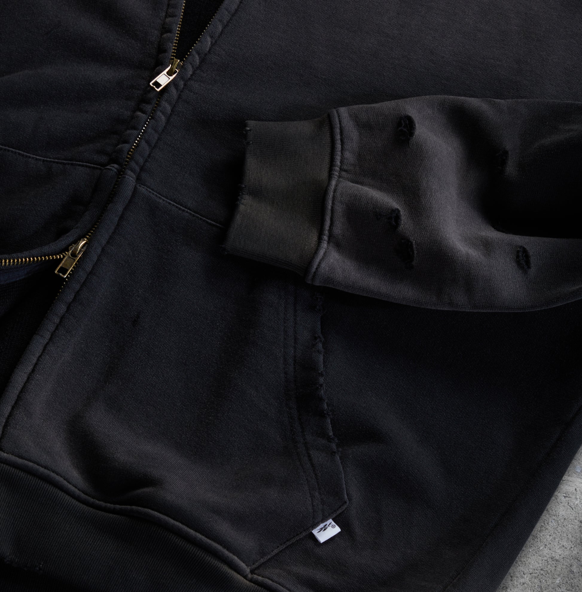 Washed Distressed Zip-Up Hoodie (Sunfaded Black)