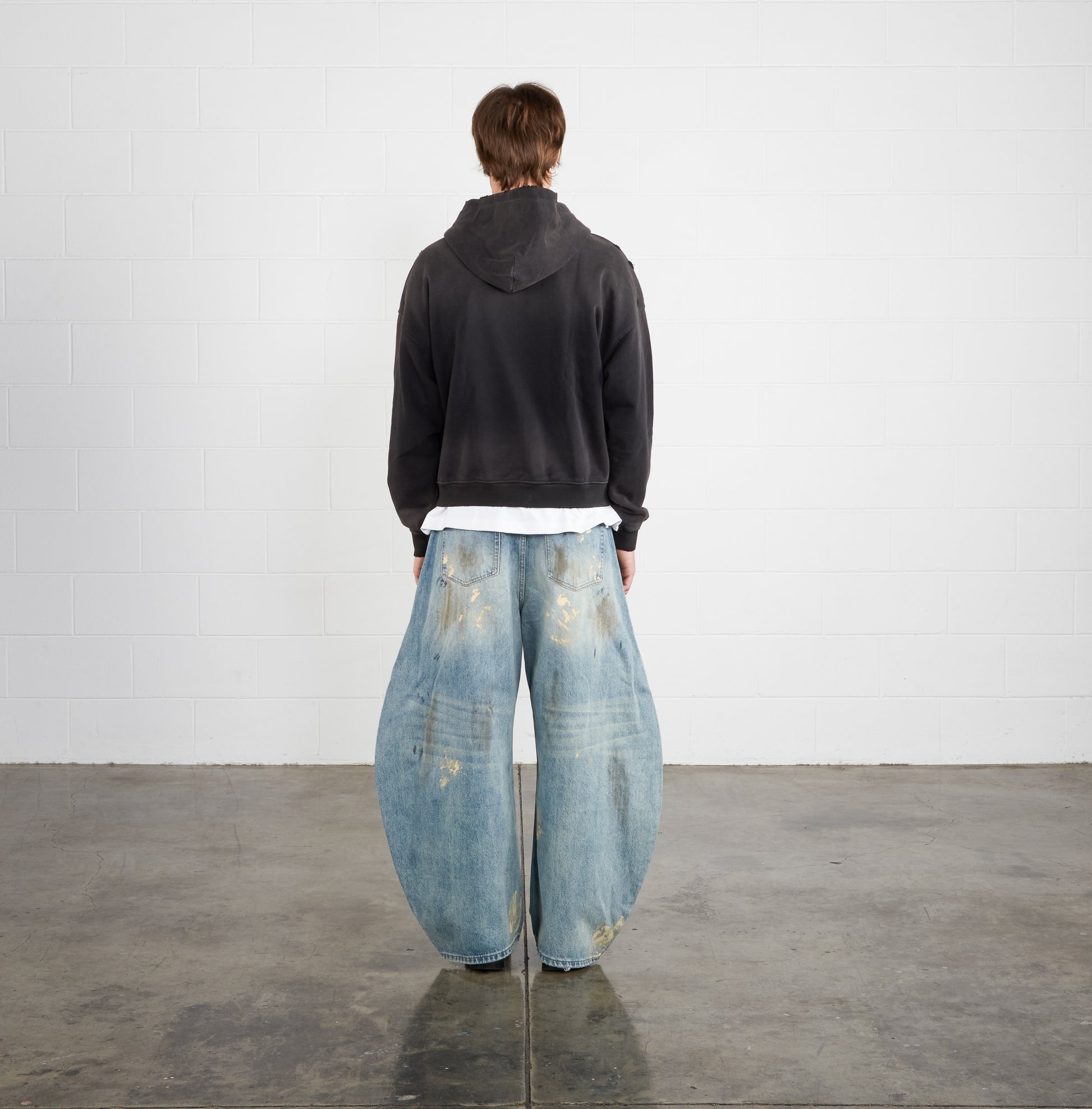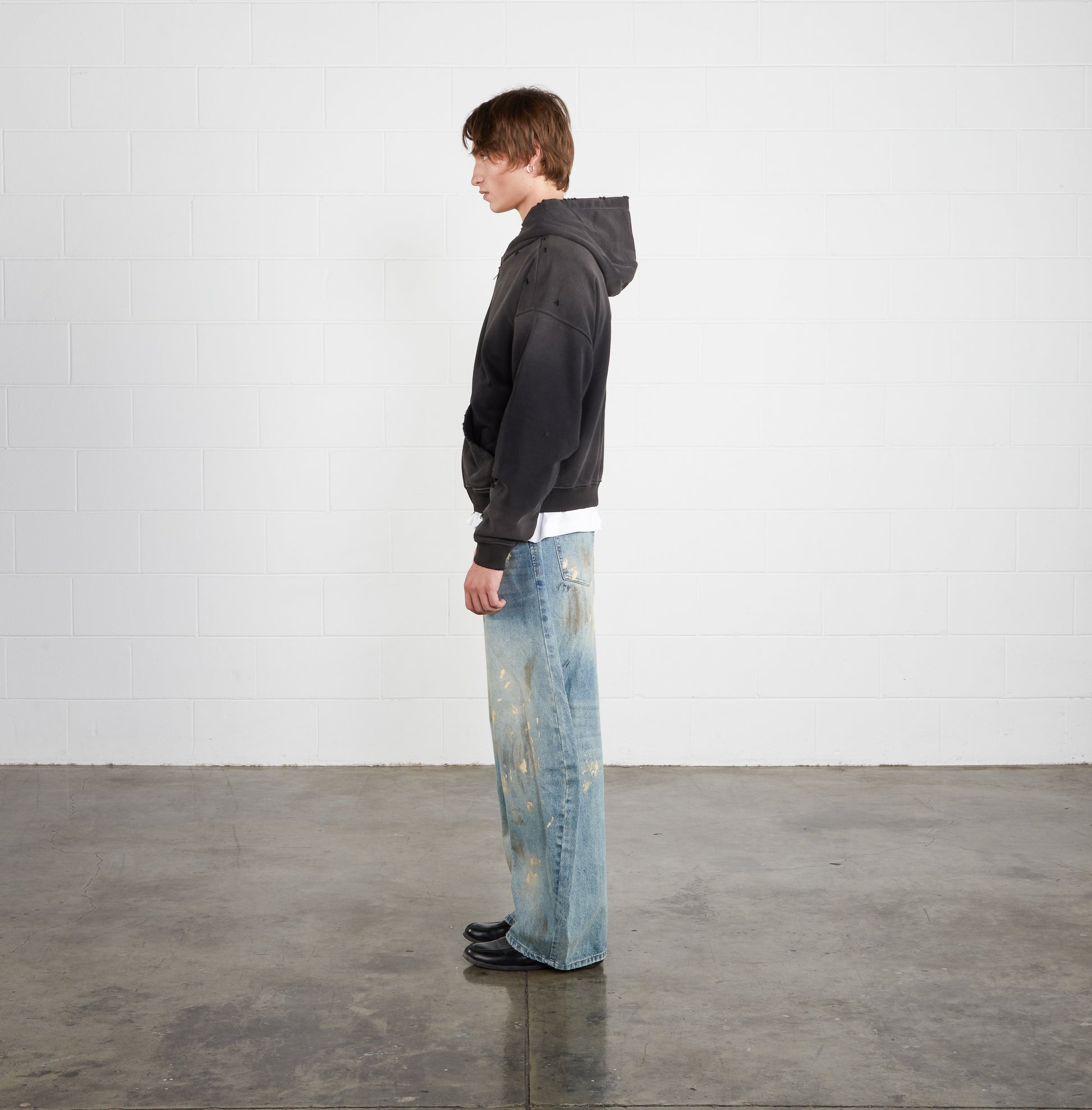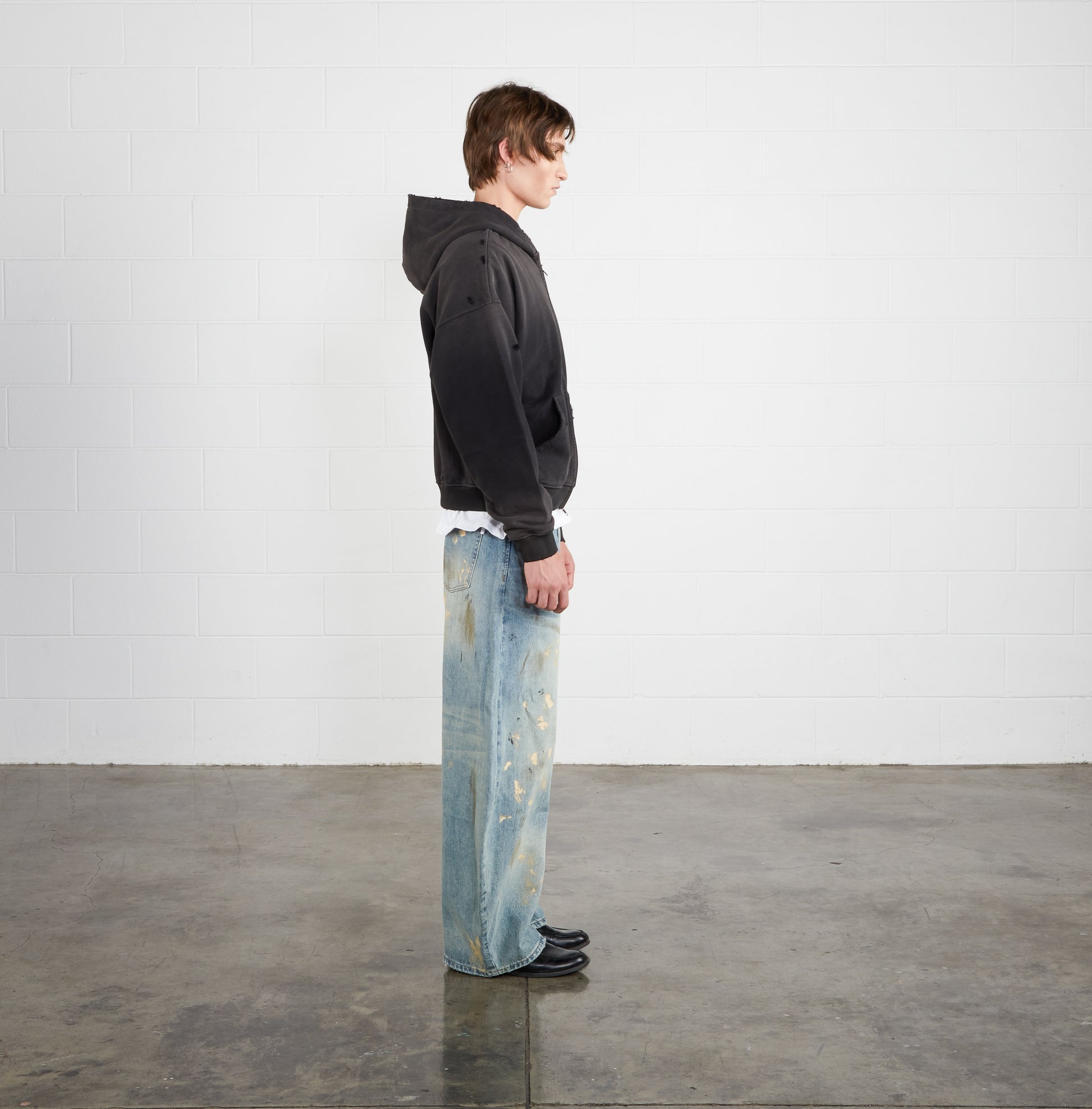 Washed Distressed Zip-Up Hoodie (Sunfaded Black)