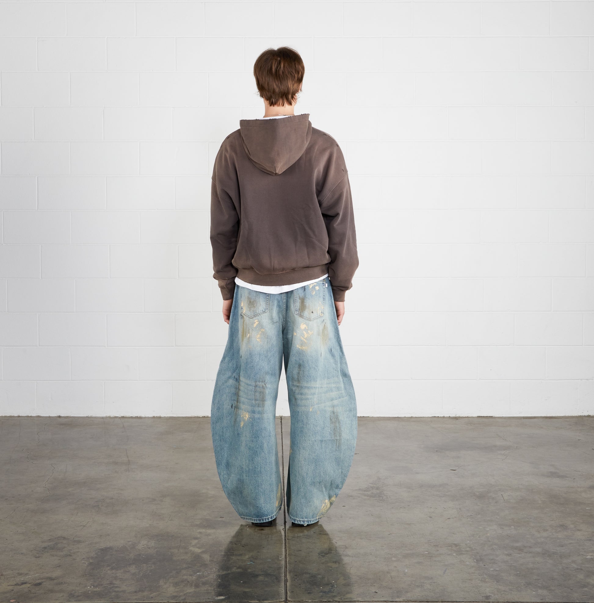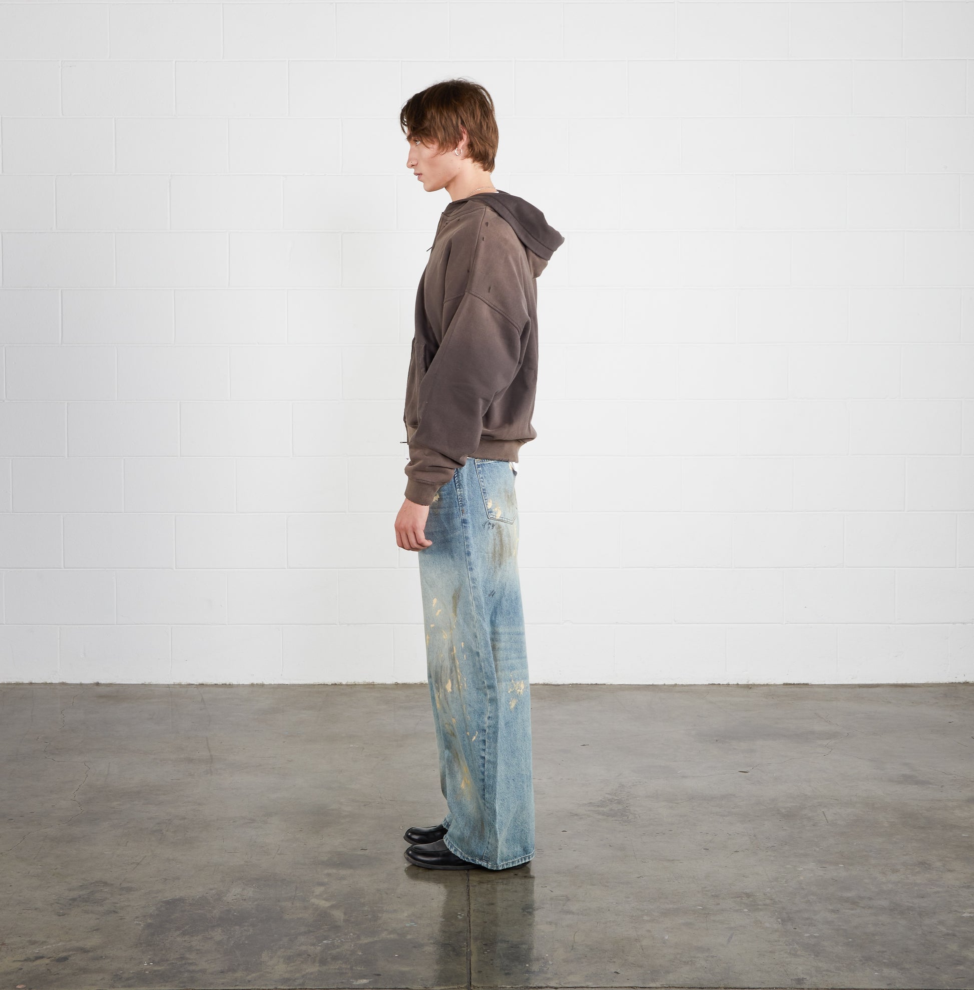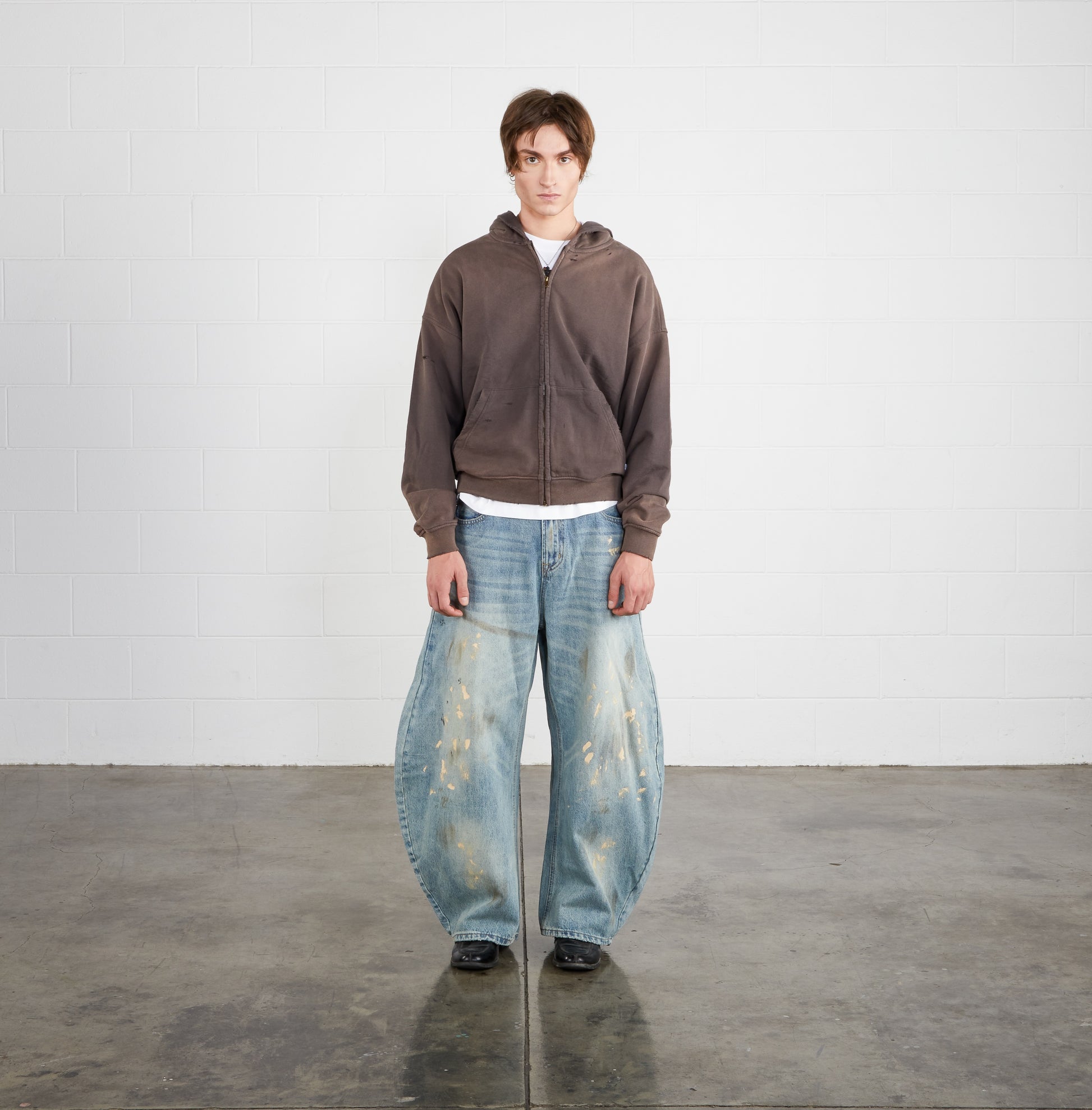Washed Distressed Zip-Up Hoodie (Sunfaded Dark Grey)